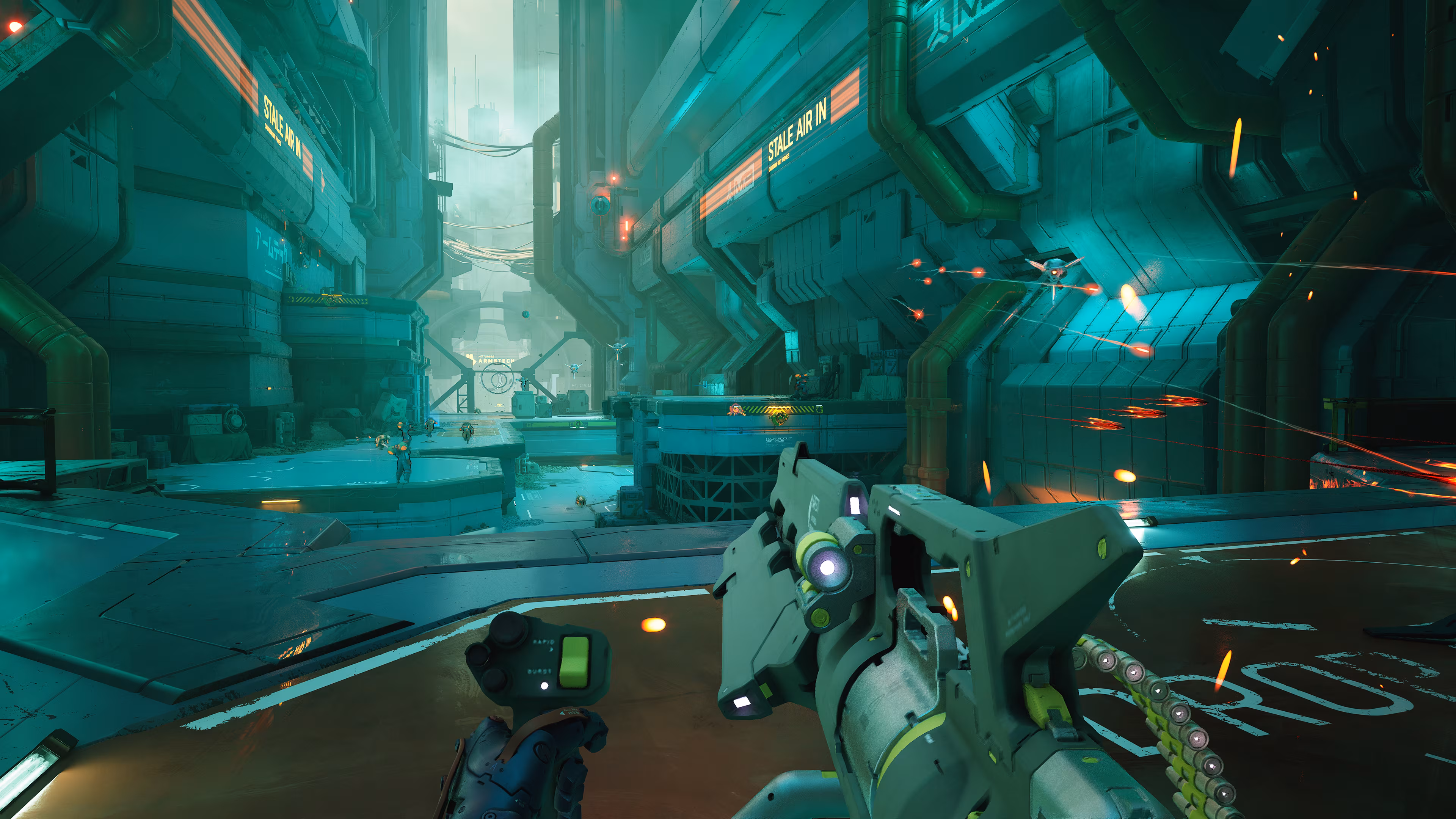 Oyunun kalbinin attığı yer kesinlikle oynanış mekanikleri. Metal Eden, Doom ve Ghostrunner gibi yapımların DNA'sını taşıyor. Çift zıplama, duvarda koşma, atılma (dash) ve yer çekimi kancası (grappling hook) gibi yetenekleri birleştirerek savaş alanında adeta dans ediyorsunuz. Çatışmalar o kadar hızlı ki, mermilerden kaçmak ve düşmanların enerji kalkanlarını aşmak için sürekli hareket halinde olmanız gerekiyor. Oyuna daha sonra eklenen "Zırhlı Koçbaşı" (Armored Ramball) modu ise karakterinizi yüksek hızda yuvarlanan bir topa dönüştürerek düşmanları ezip geçmenizi sağlıyor. Ayrıca zamanı yavaşlatabildiğiniz "mermi zamanı" (bullet time) mekaniği, reflekslerinizi konuşturmanız için harika pencereler yaratıyor.